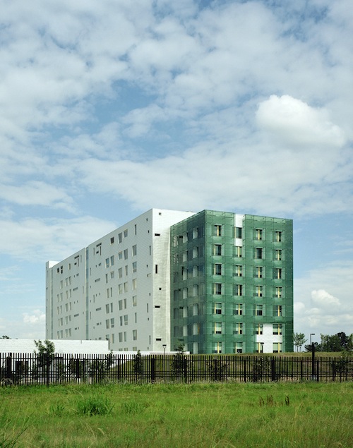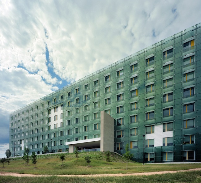 It was challenging to get the glass just right, however. The designers were looking for certain qualities in terms of color, price, translucency/transparency, solar shading, and reflectivity. They started with translucent green glass but eventually gravitated to frit, then explored a number colors, densities of frit, and patterns.